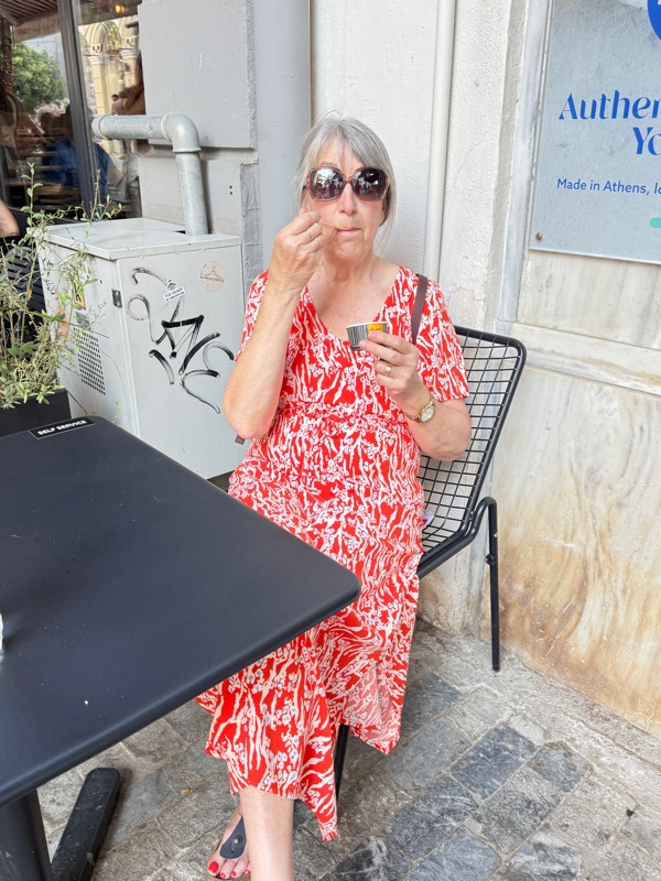 Our second day in Athens began at a delightful restaurant named “Picky”. It spills out onto the shared walkway and road! All the lovely people seem to be there. The staff and food are lovely.