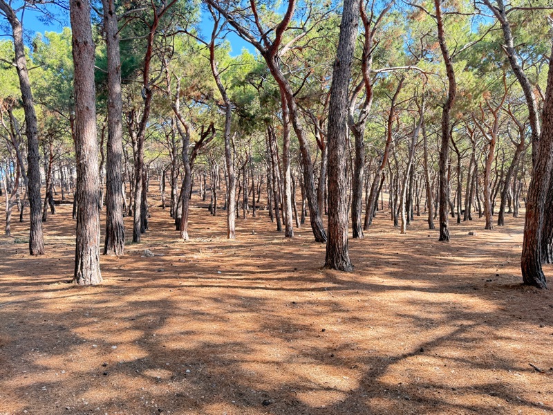 After a ten-minute uphill walk we came upon a ruined Ottoman fortress. The trees below were planted in neat rows and gave great shade.