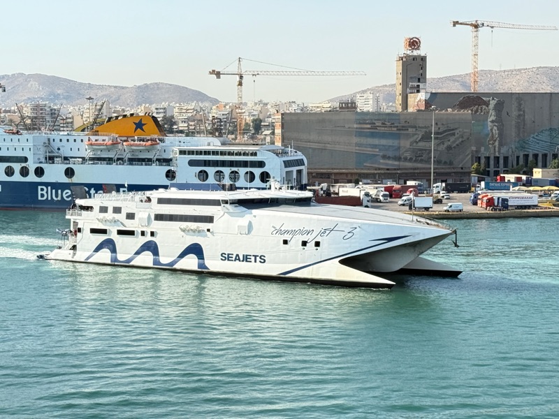 The first day of the cruise arrived and we said goodbye to our hotel in Athens. The traffic was frantic as it was the first day of school. We arrived at the ferry terminal and went through security. Here is Marija on the grand staircase! Our ship has 600 passengers and about the same number of staff. We enjoyed a buffet lunch with a couple from the U.S. He had been a lawyer, and she a teacher! We waited until about 3:00 and then went to our staterooms and unpacked.