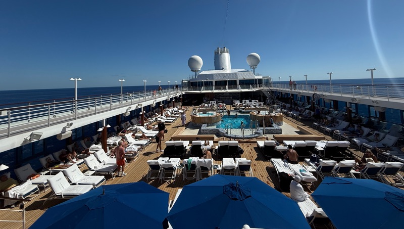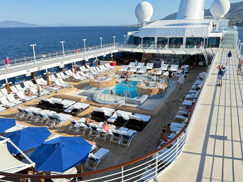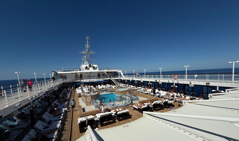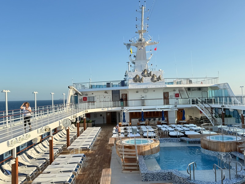September 24th we were at sea for the entire day. It was very uneventful and nice to have a quiet day. We slept in!!! With excursions you need to be ready by about 8:00 a.m. so we would get up at 6:00 a.m. But on this day we slept in until 8:00. Then we went up to the 9th floor and ate breakfast at a cafe close to the pool. Lattes and croissants with some fruit and an omelet (for Tim). It may have been this day that we did laundry.