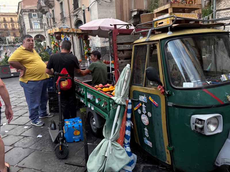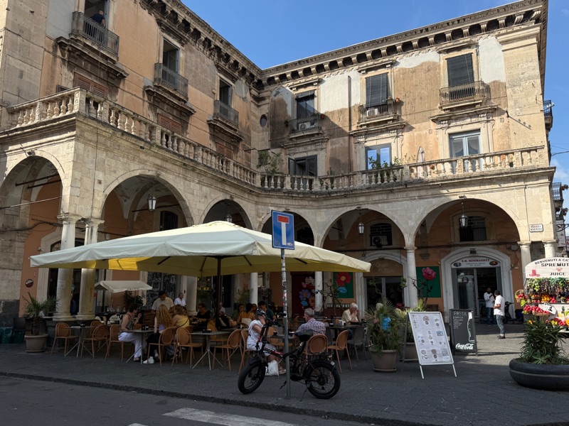 It gets better! At night the Catanian restaurants and bars fill the sidewalks and roads with tables and chairs. Three of those bars were right under our window. Oh, another good thing, they had invested in a brilliant set of patio doors which cut out all the noise. The bars were finally cleaned up at about 2:00 a.m.