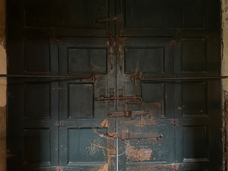 The bathroom was a treat. Firstly, part of the floor felt like it was caving in. It was covered with a mat so no problem! The shower door looked like it had been reclaimed from a junk yard, the holes filled with wood filler and … nothing else! It was sort of a barn door but when Marija went in to take a shower she could not open the door to get out. The walls of the showers were lined with mirrors. On the website everything is sparkly clean but in reality there were huge black splotches on the mirrors. But the place was clean. There was a lot of clever decorating going on all through the place with found objects displayed everywhere. Old hats, a plaster bust of a man, random pieces of wood, a suit of armour - coated in dust, the list is endless. Please check out the website. At least we did not need to climb a ladder to get to a bed which was on pieces of wood hung from the ceiling. I hope they didn’t need to get up - in mean down - in the night.
