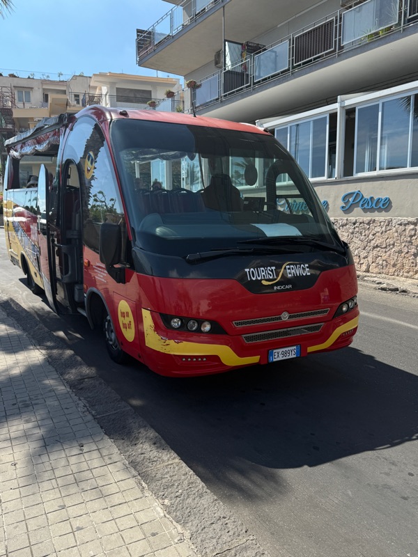 After a good night’s sleep we walked down to a cafe for coffee and croissants. Then we explored the cathedral. We bought tickets for a Hop On/Hop Off Bus which drove us down the coast to a quaint village. Then we walked around and found another church which had an owner. Upon climbing to the top we had a spectacular view of the city. A storm was brewing so we headed back to our place. We headed out later for dinner.