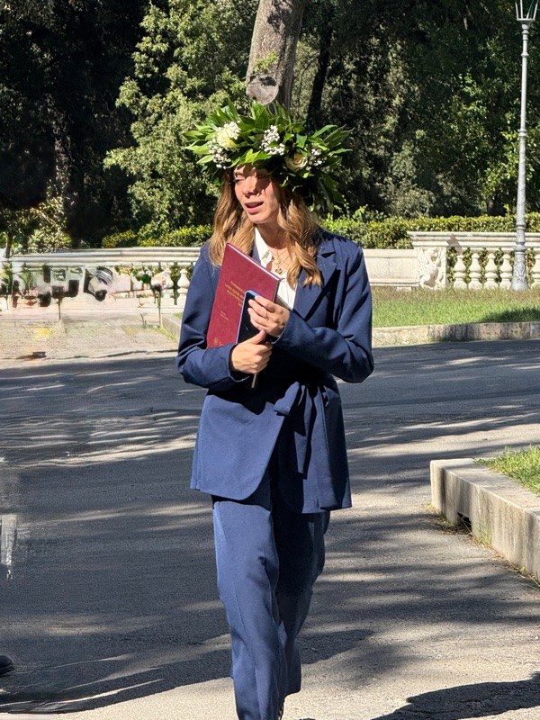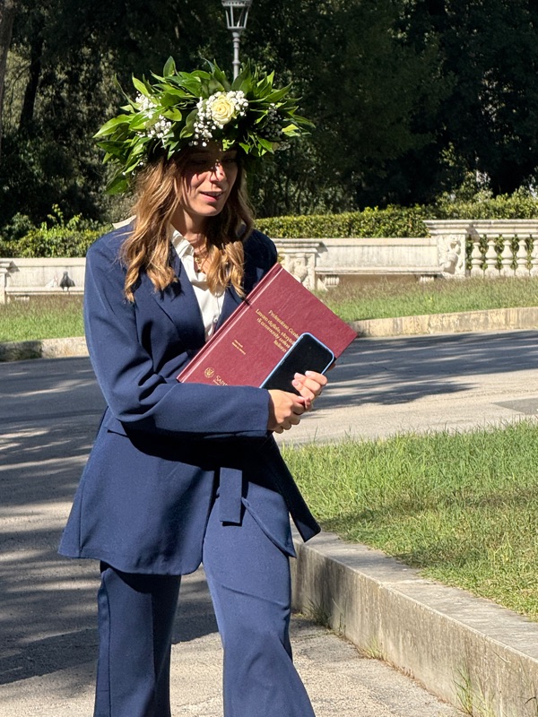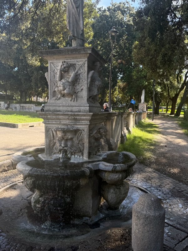 The park has gelato stands, ponds, seating, lovely shade trees and bicycle carts for several people to ride. It was full of happy people. A group of young adults walked past us. Several people surrounded a girl with an elegant laurel crown and we deduced that she must have received a university degree. She was posing for photos with a folder. She had bouquets of flowers and a bag of gifts. More and more people showed up. Friends and family her mother, grandmother, grandfather and later her father. Mum pulled out glasses and a bottle to give a toast. They there were multiple snacks. We had to leave but it was wonderful to watch the celebration.
