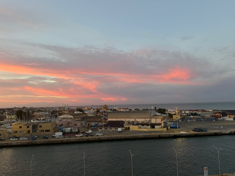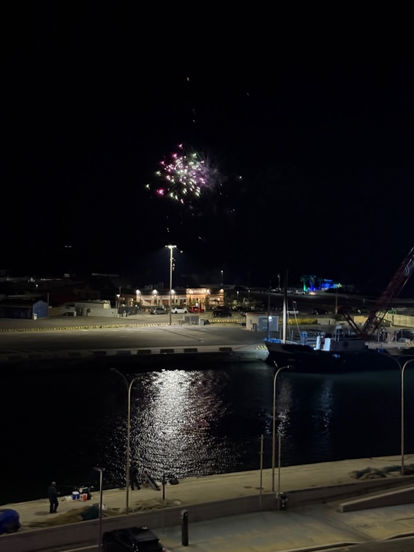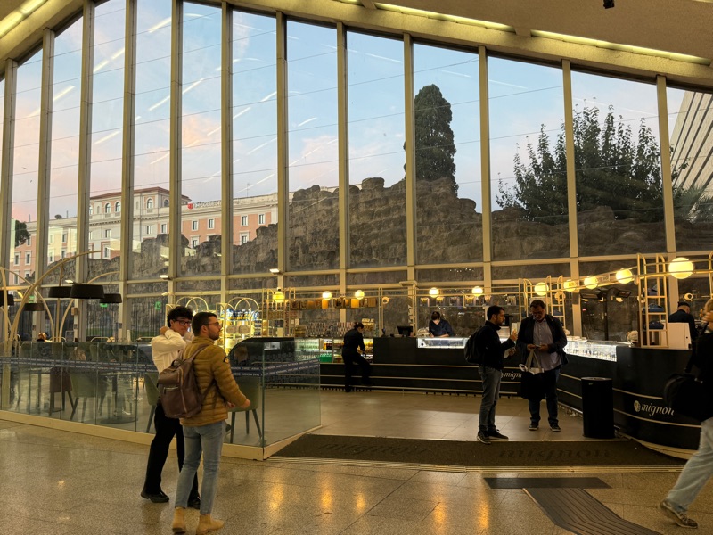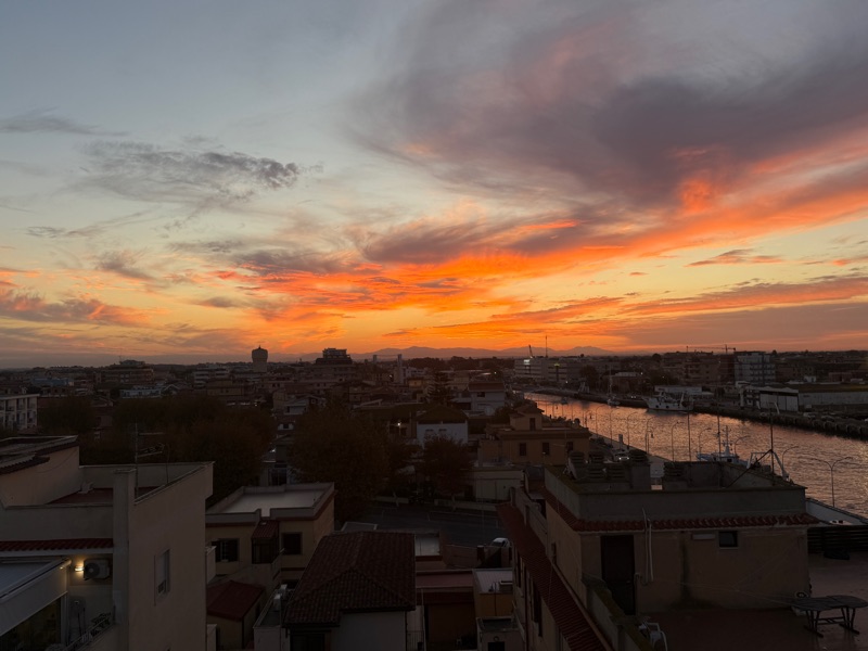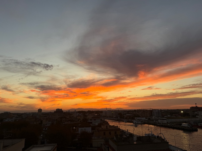 We each had a refreshing gelato, the last on our trip. Sigh! We then got on a Hop On/Hop Off bus and hopped off at Rome Termini where we went to a restaurant called Eataly - Tim had pasta carbonara and Marija had spaghetti with wild boar ragout. Both delicious. Then on the train back to the airport and then to our hotel. There were at least 12 fishermen out on the cement dock fishing in the TIber River. We were also witness to some fireworks late in the evening. What a beautiful finish to our trip.