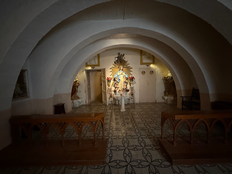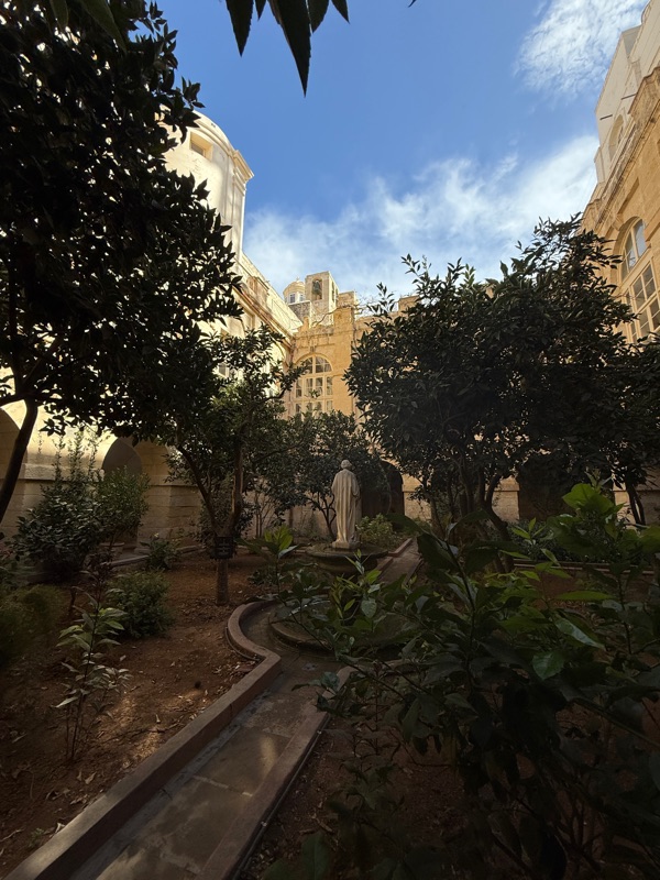 We then took the public transit into Valetta where we opted for indoor activities as it was raining. Once the rain had cleared we went back out into the sunshine. Two of the highlights were St. Catherine’s Monestary and the secret garden. A wealthy couple bequeathed their palazzo to orphan girls. The building became a monastic order where the nuns pledged never to leave the building. We went on a self-guided tour of the main floor which contained kitchens, storage rooms, bedrooms for the nuns and Mother Superior, laundry area and more. In the middle of the area it was open to the sky and there was a garden in which the nuns grew food to sustain themselves. (There was also a crypt where many of them are buried.) Today only one very elderly nun remains.
