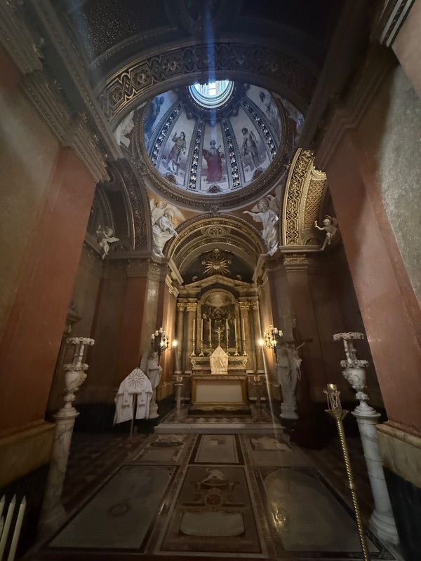 The next stop was the Kinisa San Dominica - this one occupied by Dominican monks. It was spectacularly furnished and was attached to a magnificent church which was painted by a Maltese artist.