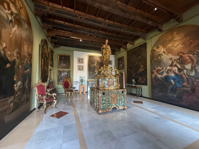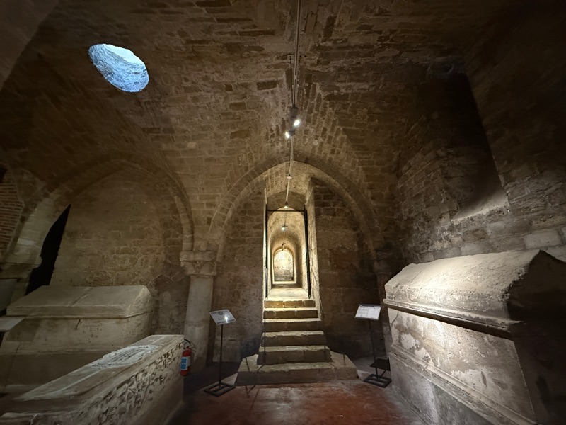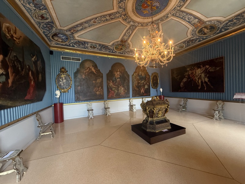 Then we moved on to the Bishop’s Palace next to the Cathedral. Opulent is the only way to describe it. As we walked through the various rooms a very talented piano player was performing on the sidewalk and his music was drifting in through the windows adding to the experience. Also attached to the ticket was the cathedral treasury and the crypt.