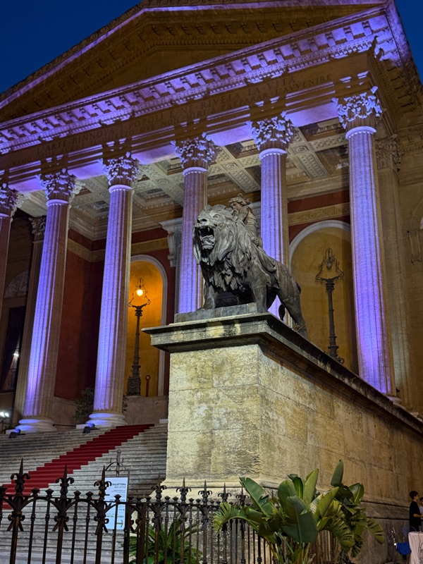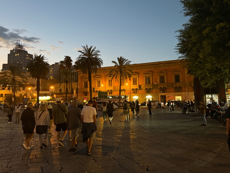 Later we managed to take in a guided tour of the Teatro Massimo - the third-largest opera house in Europe. It seats over 1300 people. Parts of it have been restored but some of it needs attention. The square around the teatro was bursting with people as it was Sunday evening and after another warm day people were out and about.